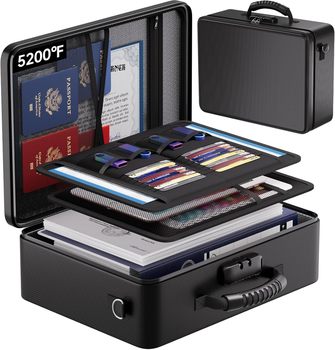 YHX Огнеупорный ящик для документов Огнестойкий и водостойкий портативный органайзер для файлов Хранение Домашний Сейф для документов Ноутбук Наличные Черный