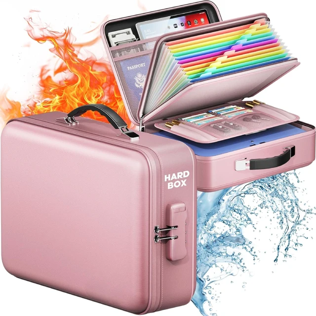 Hard-Shell Fireproof Document Box Waterproof Organizer for Home Office Documents Valuables Storage Travel Emergency